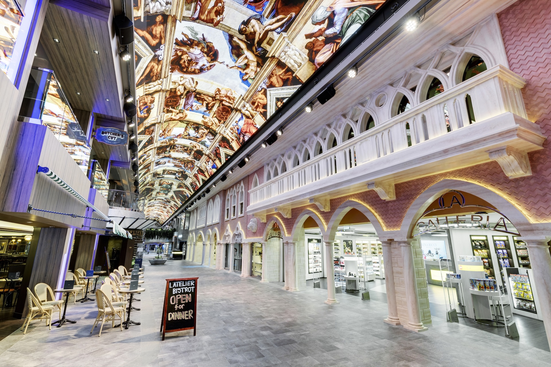 - Pramogos laive: baseinai, vandens pramogų parkas, vaikų žaidimų kambariai ir t.t.;